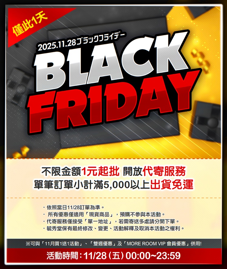 📅 活動時間:11/28(五)00:00~23:59🎯 適用範圍:全館商品(僅限「現貨」,預購商品不列入)